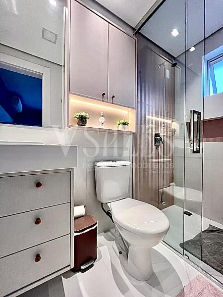 O apartamento vem com móveis planejados de alta qualidade, garantindo um ambiente sofisticado e funcional. Todos os móveis fixos estão incluídos na venda.