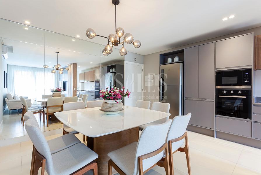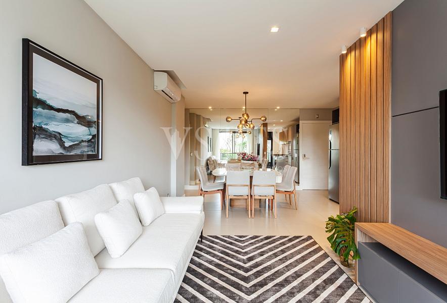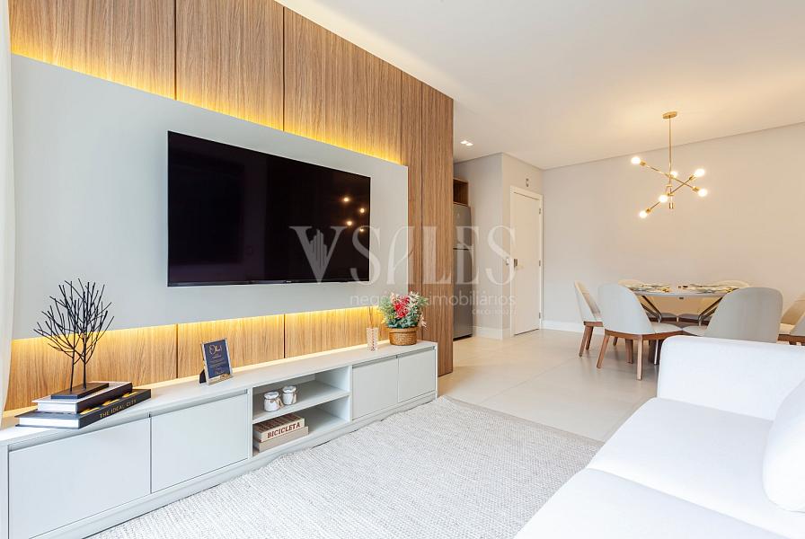 Living integrado com sala de estar e jantar, perfeito para receber amigos e familiares 🍷