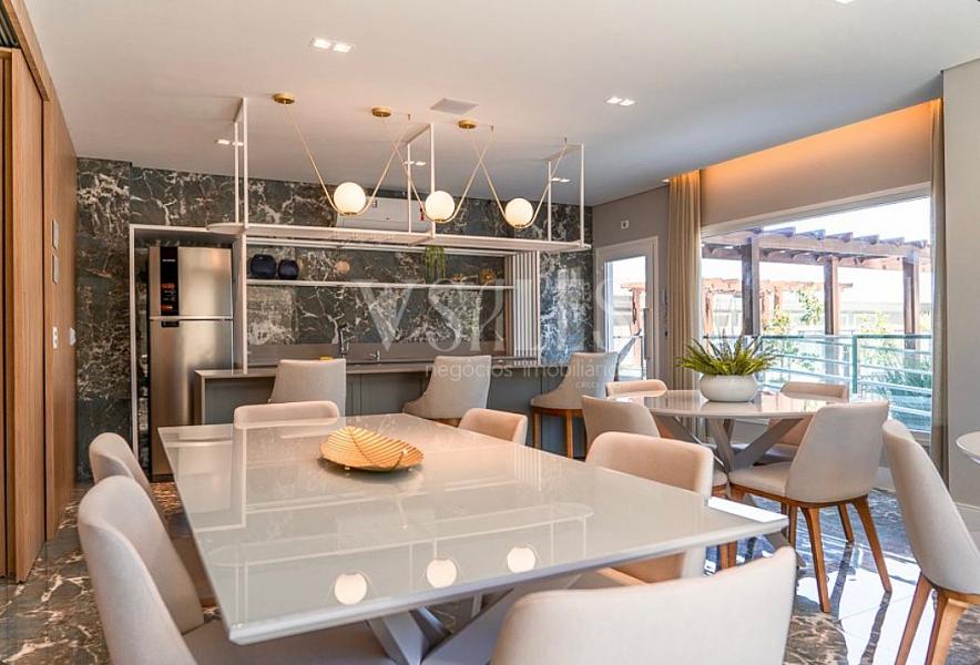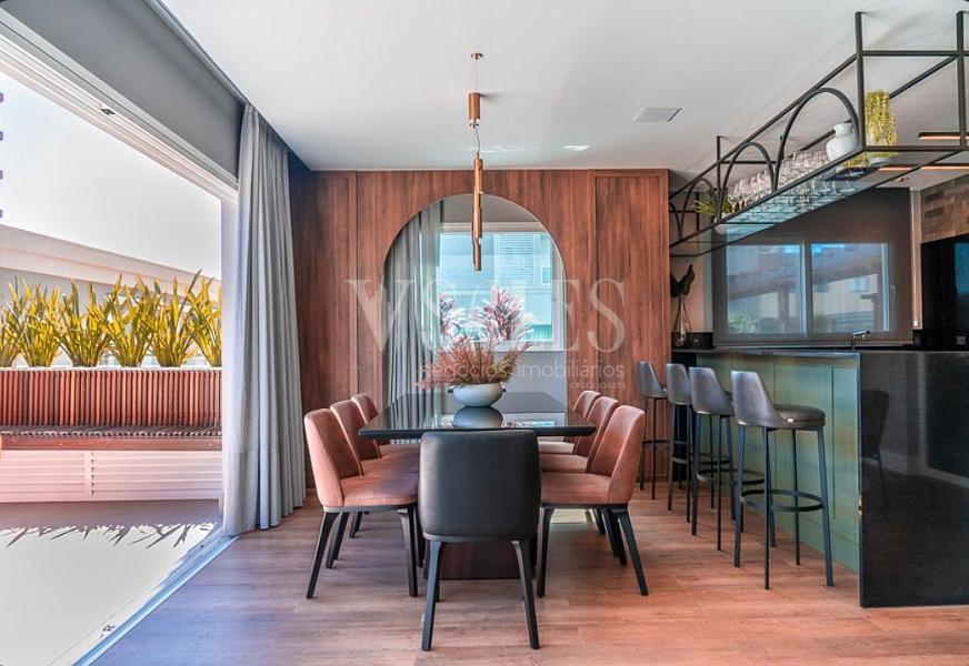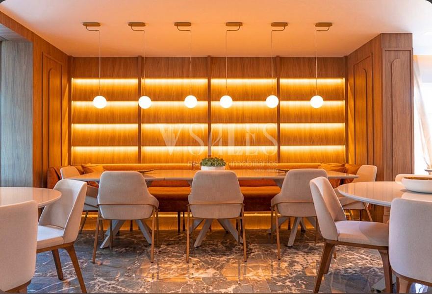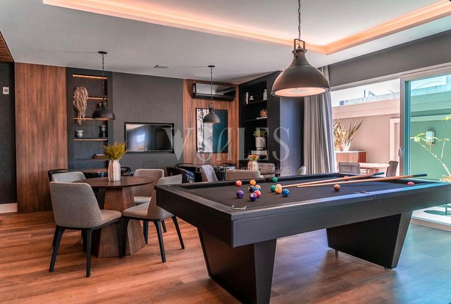 Com 120m² de área privativa, este apartamento foi pensado para quem valoriza qualidade de vida sem abrir mão de conforto e sofisticação. São três suítes, quatro banheiros e uma planta generosa, com duas vagas de garagem gaveta (27m²).