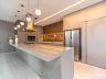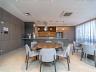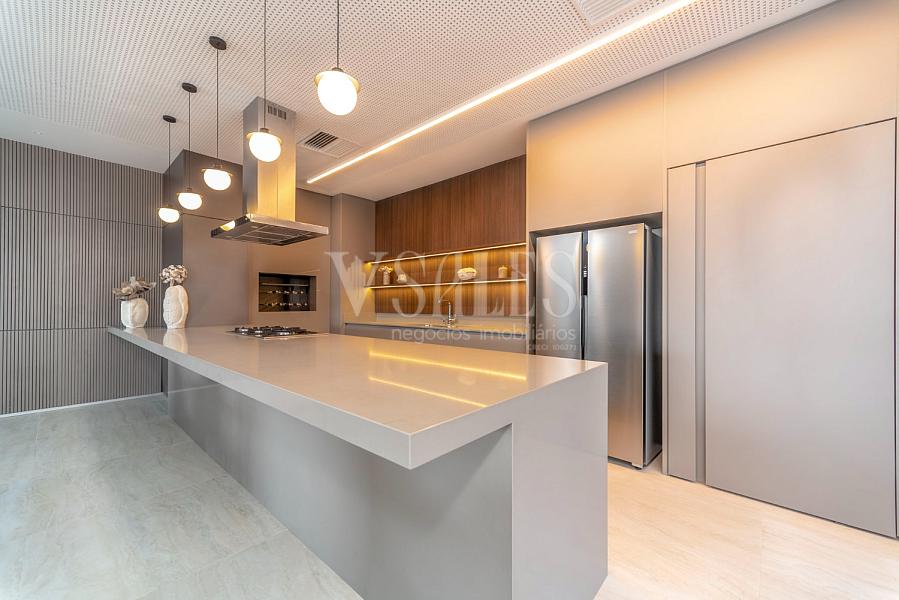 Projetada com acabamentos de alto padrão, como bancadas em granito ou quartzito, a cozinha alia modernidade e eficiência. Armários planejados e instalação para eletrodomésticos de última geração completam o ambiente, que pode ser integrado à sala de jantar, criando uma atmosfera social e acolhedora.