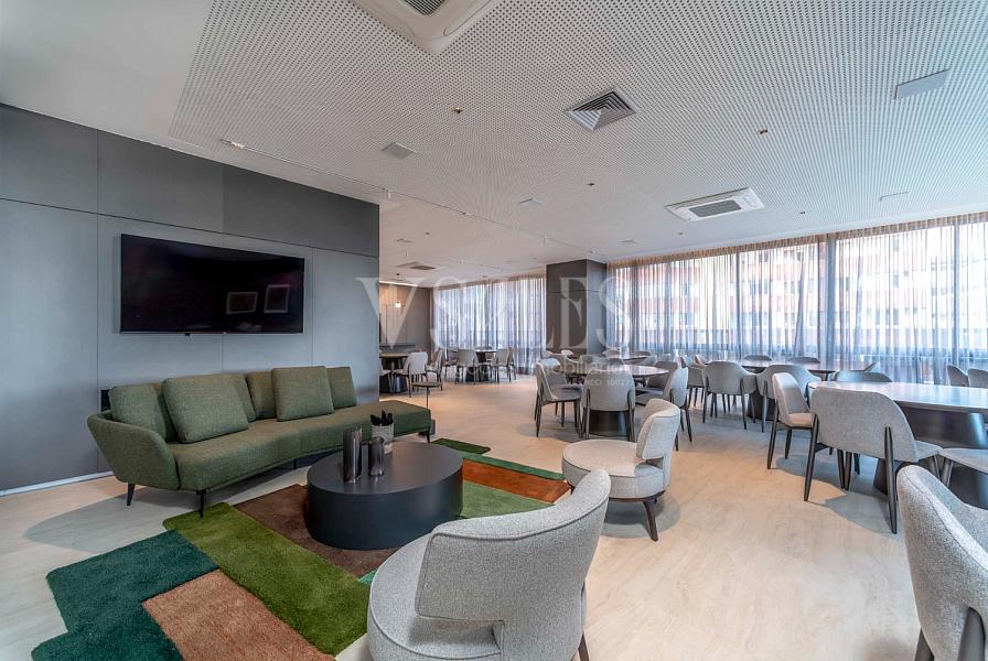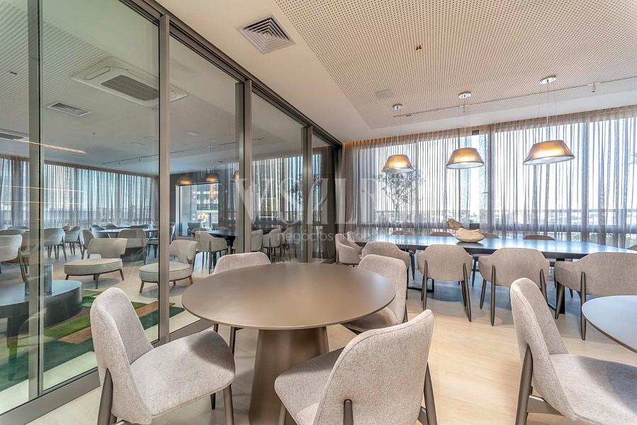 Ampla e iluminada, com janelas que emolduram uma vista privilegiada da cidade. O espaço é ideal para momentos de relaxamento e convivência, com design pensado para o máximo conforto.
