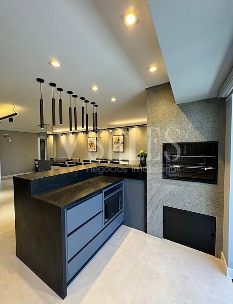 O apartamento conta com living integrado, lavabo, cozinha, área de serviço, churrasqueira, sacada com vista panorâmica, acabamento em gesso, porcelanato e vinílico nos dormitórios, além de infraestrutura para água quente, espera para split, gás individual, hidrômetro individual e fechadura com senha na porta de entrada.